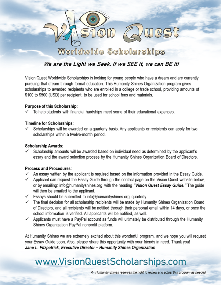 Students Request your Vision Quest Essay Guide on the CONTACT page of this website. We are excited to hear from you!
